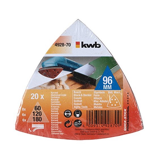 Set di 20 fogli abrasivi velcro per legno e metallo. I fogli sono dotati di fori per levigatrici con dispositivo di aspirazione.