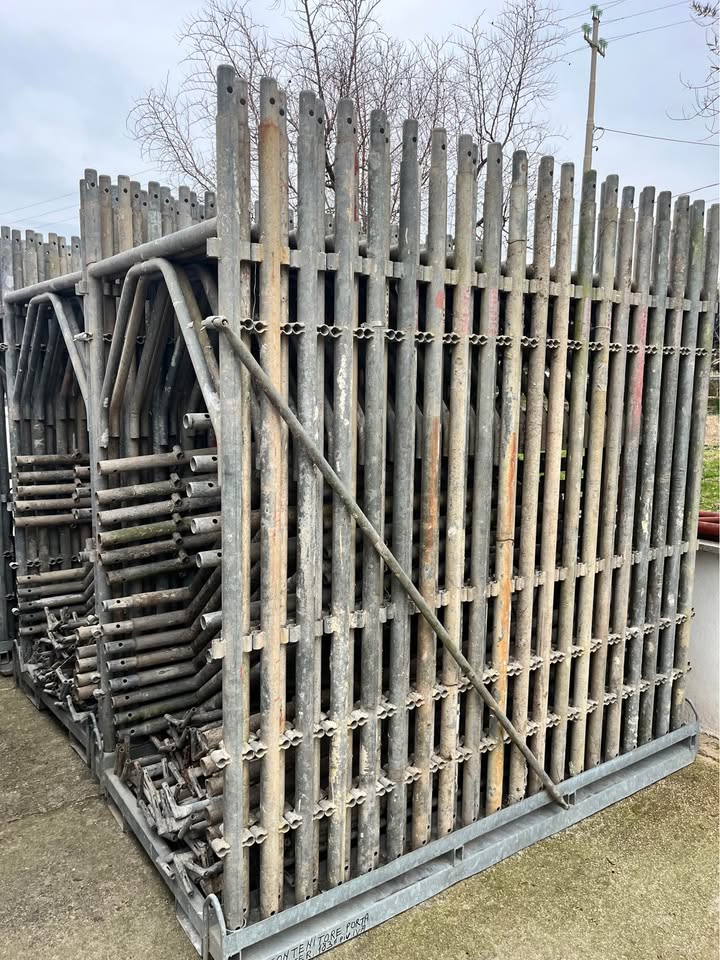 Vendo 600 metri di ponteggio Ceta zincato a boccoli e 300 metri ponteggio Ceta verniciato sempre a boccoli totali 900 metri zincato costa 25€ al metro più iva è verniciato 19€ più iva tutto completo di telai correnti diagonali pedane botole scale cancelleti pure porta cavalletti per info ![]()