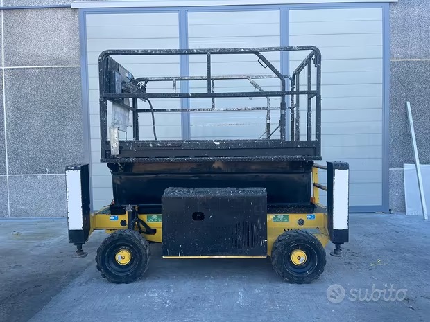 Tipo Scissor Marca Airo Modello X12RTD Altezza di lavoro 12,00 m Anno 2010 Portata 450 Kg Ore di lavoro 1614 Trazione 4x4 Matricola 2011847 Pendenza sup. 40% Motore Diesel Dimensioni totali 2,45 x 1,45 x 1,70 m. Navicella 2,45 x 1,45 x 1,10 m. Estensione cesto 1,20 m. N operatori 3 Stabilizzazione H+H automatica Comandi Elettronici proporzionali Peso 3280 Kg.