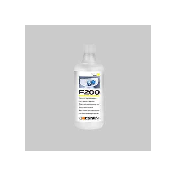 ANTICALCARE PER CASSETTE WC 'F200' 1 lt - Per cassette WC interne ed esterne. E' concentrato e risolve completamente il problema senza lasciare alcun residuo di calcare dopo il trattamento. Non intacca e Non deforma parti e componenti in plastica o gomma.