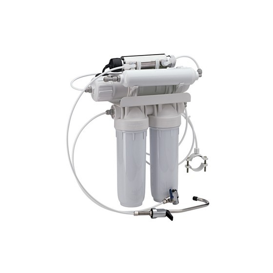 Apparecchio ad osmosi inversa da sottolavello, specificamente studiato per l'affinamento dell'acqua potabile. Con 2 stadi di prefiltrazione, debatterizzatore, serbatoio di accumulo.(DianFlex)