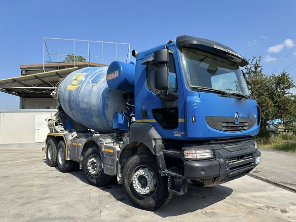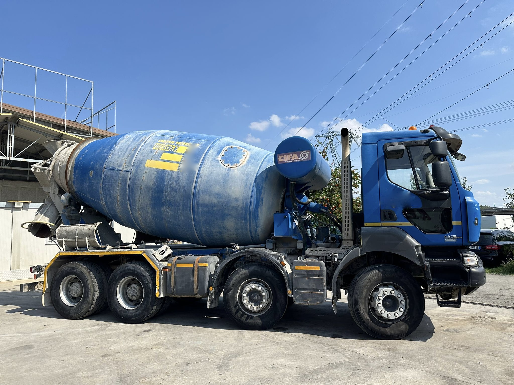Autobetoniera Renault Kerax 460, anno 2010, euro 5, 4 assi, 8x4, mezzo d’opera, cambio manuale, km 298.000, botte da calcestruzzo Cifa, presa di forza, revisione regolare, in buone condizioni