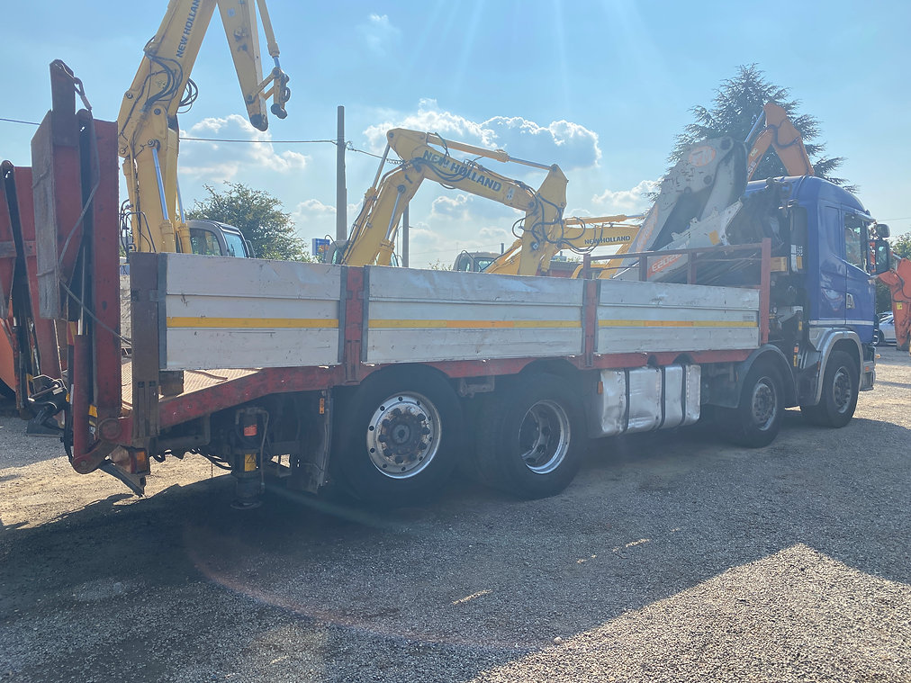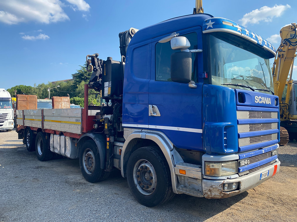 Autocarro SCANIA 124 G 470 CV 8X2 4 assi pianale con doppia rampa idraulica in discrete condizioni