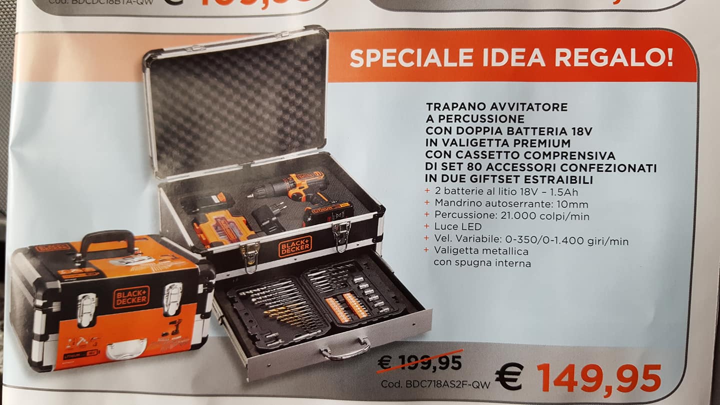 Trapano Avvitatore a percussione con doppia batteria 18V in valigetta premium con cassetto comprensiva di set 80 accessori confezionati in due GIFSET ESTRAIBILI