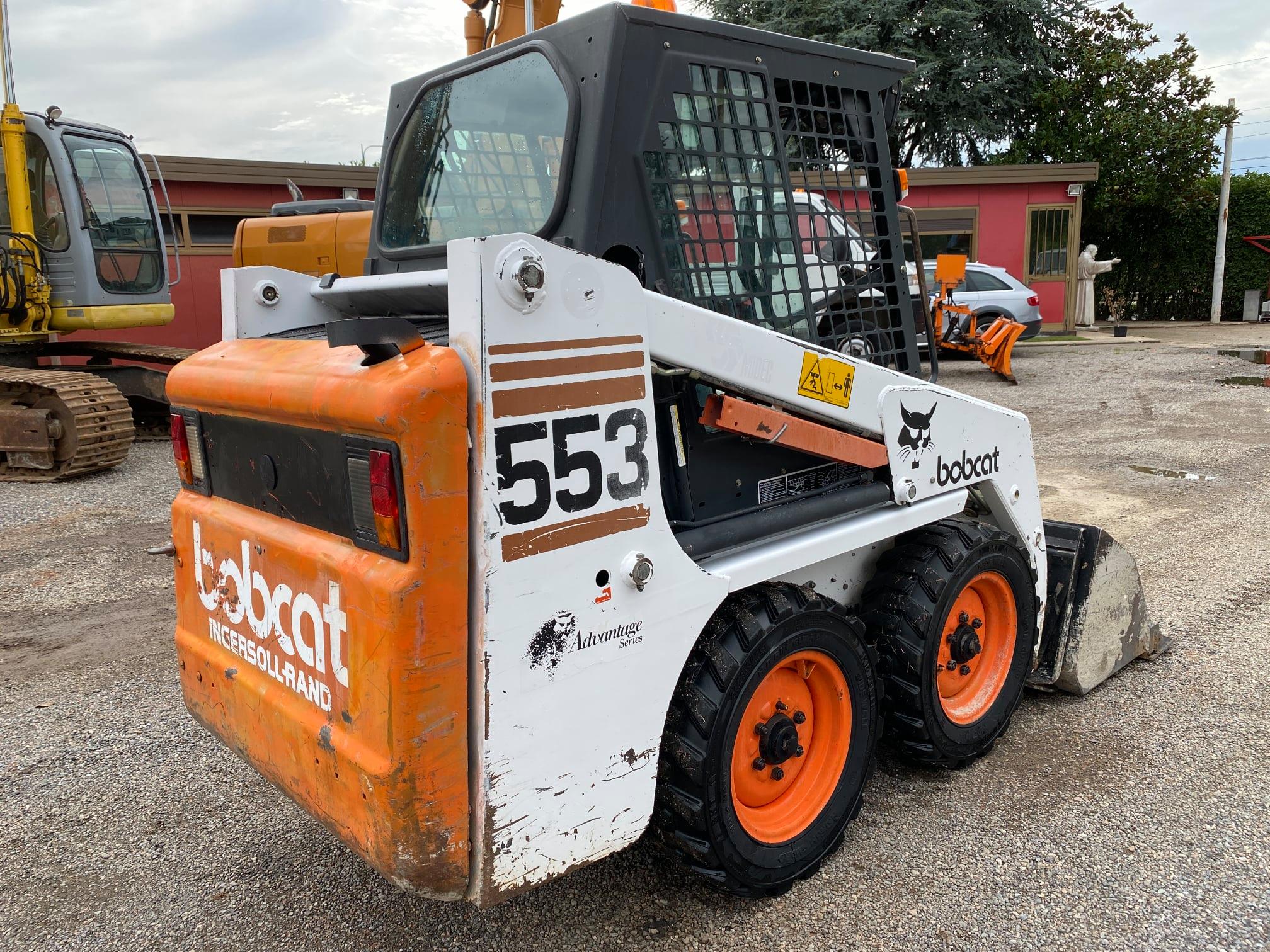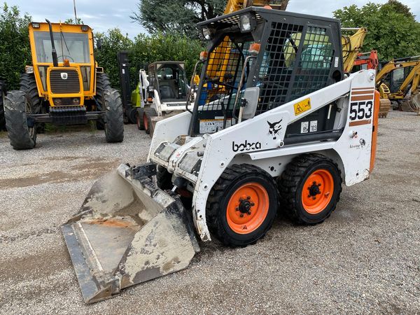 Minipala BOBCAT 553 con benna e lama in buone condizioni generali, completa di impianto per benna miscelatrice, gomme al 90%, anno 2000, ore 2200, UNICOPROPRIETARIO e sempre tenuta al coperto, pronta al lavoro senza problemi.