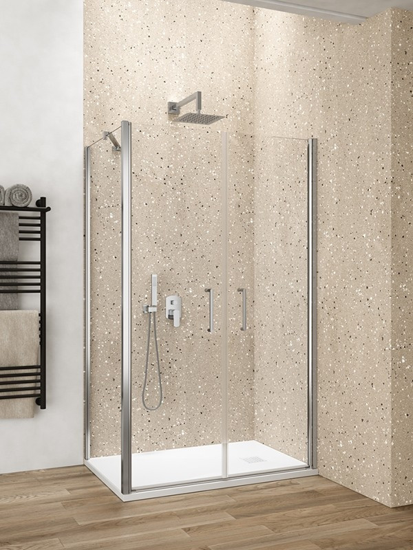 BOX DOCCIA BATTENTE LILIUM SILVER CON ANTA FISSA E CRISTALLO TRASPARENTE