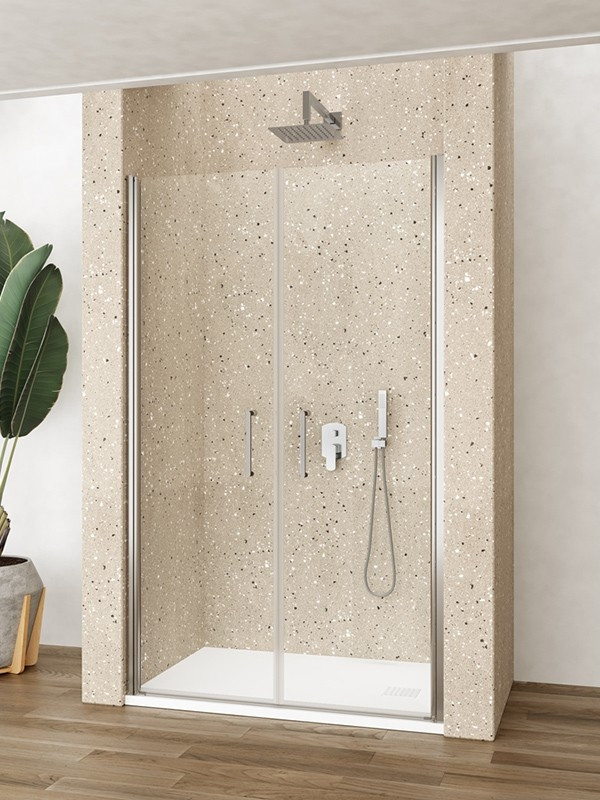 Box doccia battente LILIUM SILVER a nicchia con cristallo trasparente.