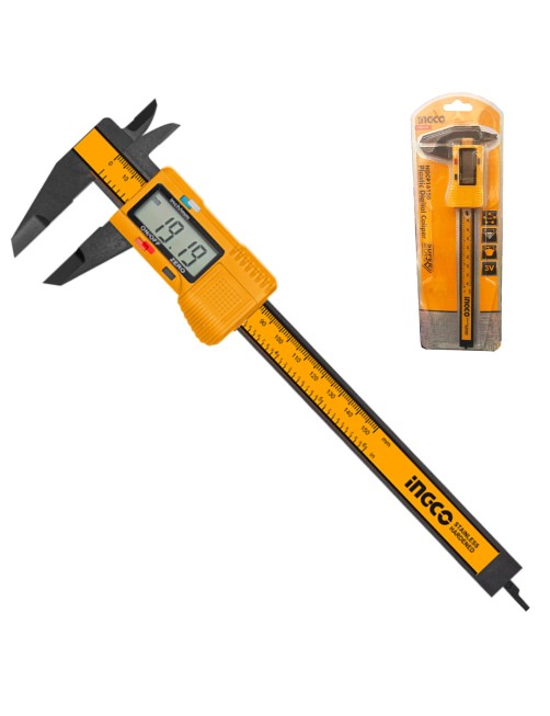 Calibro digitale 150 mm in plastica a batteria Igco HDCP16150 che misura da 0 ai 150 mm.