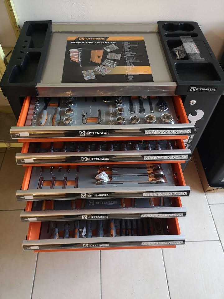 Carrello con chiavi chrome vanadium utensili professionali porta vano oggetti laterale, maniglia, con 4 ruote di cui 2 girevoli. Prezzo € 400. Per dettagli e info Vanni 3336334741.