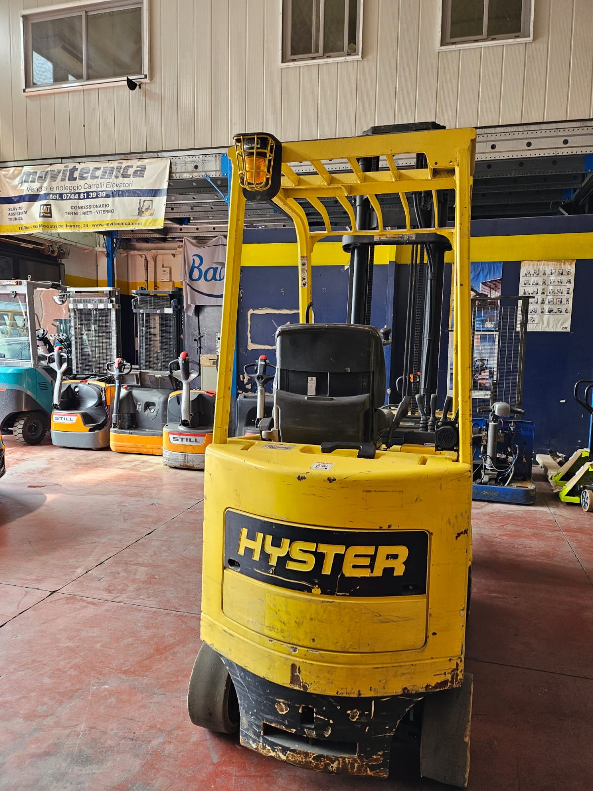 Carrello elevatore Hyster mod.E 1.5XM portata 1500kg sollevamento a mm 4330.Completo di traslatore.