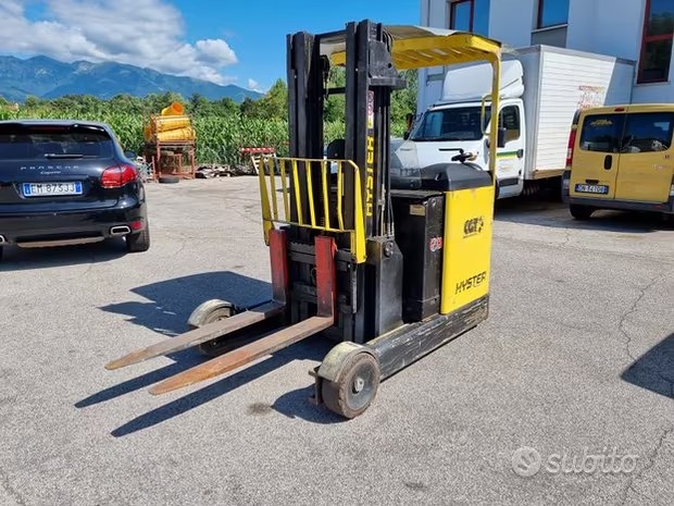 Vendo carrello elevatore retrattile elettrico Hyster modello R2.0. Ore di lavoro 2.100. Anno 2001. Portata kg. 2.000. Montante triplex con ALZATA LIBERA altezza sollevamento cm 450. Completo di carica batterie 380 volt. Prezzo netto i.e.. Per info 339 1952234 339 5814237.