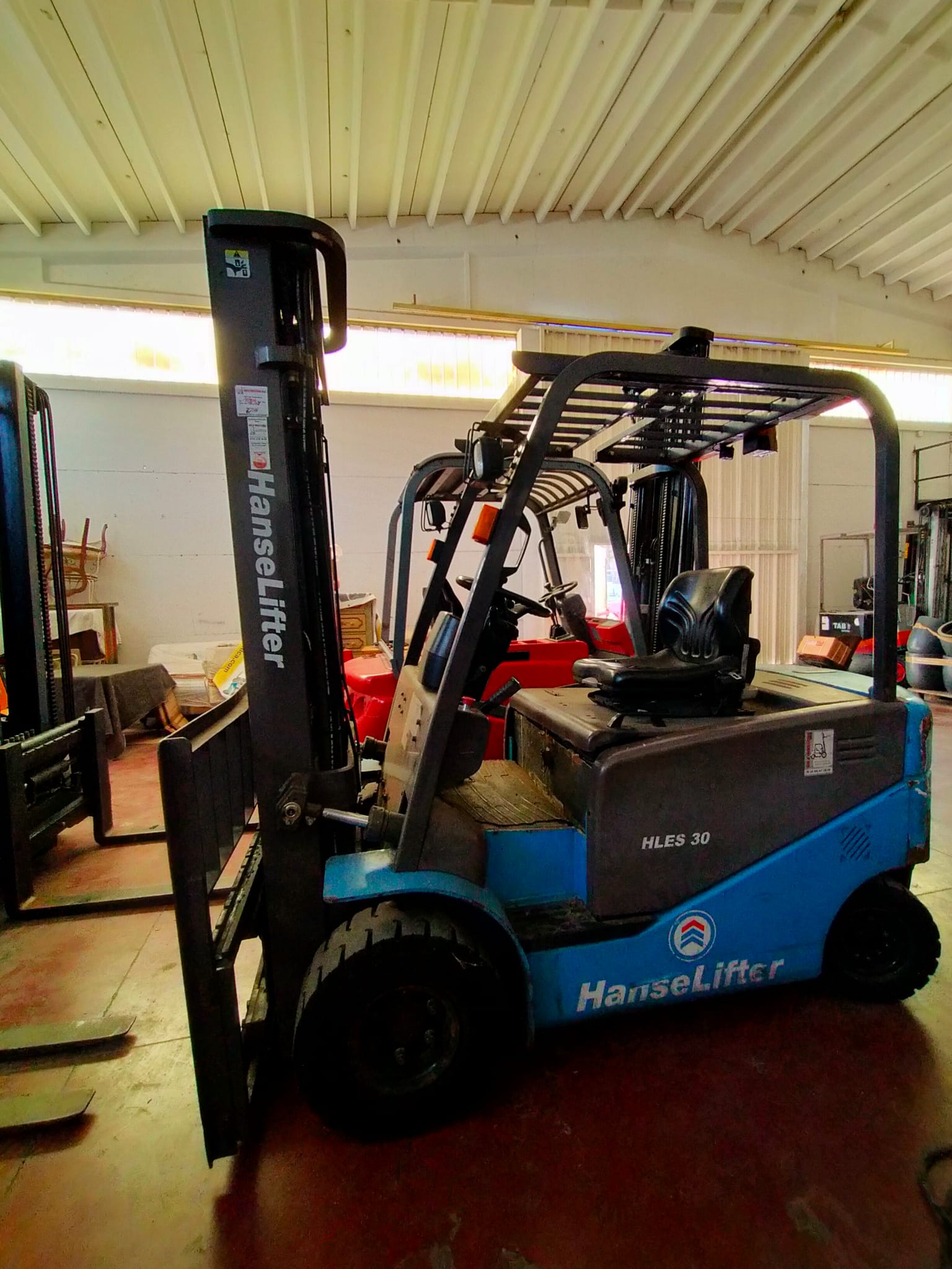 Carrello elevatore elettrico marca Hansalifter mod HLSE 30 portata 3000 kg con montante triplex sollevamento a mm 5500