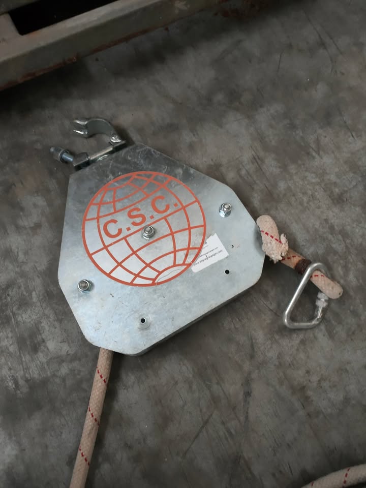 Kit carrucola di sicurezza seminuova anticaduta 50KG con freno autobloccante mensola a bandiera e corda con gancio prezzo € 280. Contatto Vanni 3336334741.