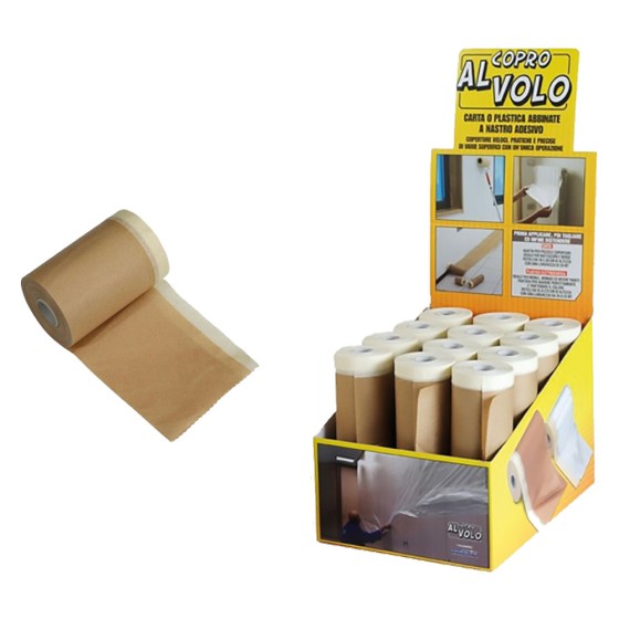 CARTA PER MASCHERATURA 'COPRO AL VOLO' cm 18 x 20 mt - Prodotto adatto per realizzare piccole coperture, rivestimenti di battiscopa, bordi, mobili, armadi, intere pareti in fase di operazioni di imbiancatura. Di facile utilizzo, velocizza i tempi di lavoro. Incluso rotolo di nastro adesivo.