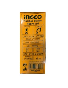 Cinghia a cricchetto Ingco 10 metri x 50 mm e una portata di 3 o 4 Tonnellate a scelta. Utili al fissaggio di oggetti durante il trasporto o la messa in sicurezza di strutture.