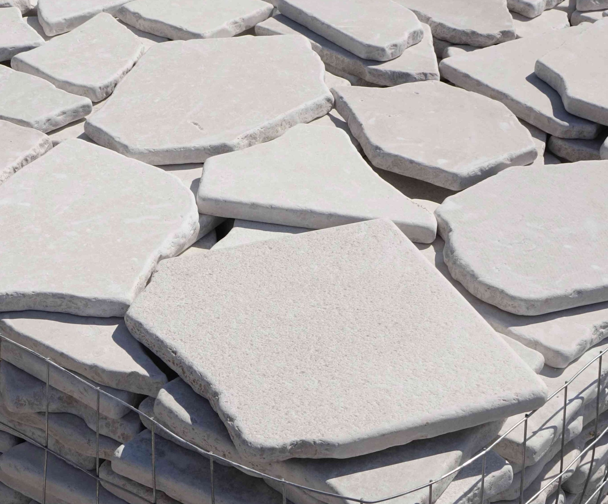 Cocciame in marmo di Trani da rivestimento anticato, spessore 2 cm.