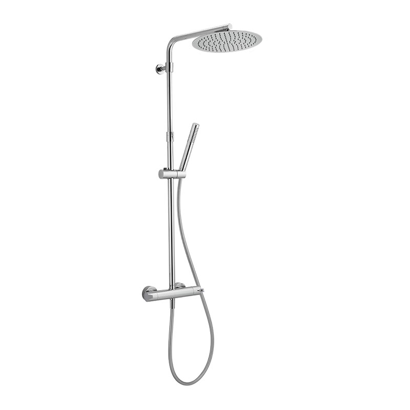 Colonna doccia termostatica 2 funzioni, deviastop 2 uscite, colonna telescopica, supporto doccetta scorrevole, doccetta monogetto minimale in ABS, soffione tondo D.250 mm sp.2 mm in INOX, flessibile liscio SILVERFLEX 150 cm.