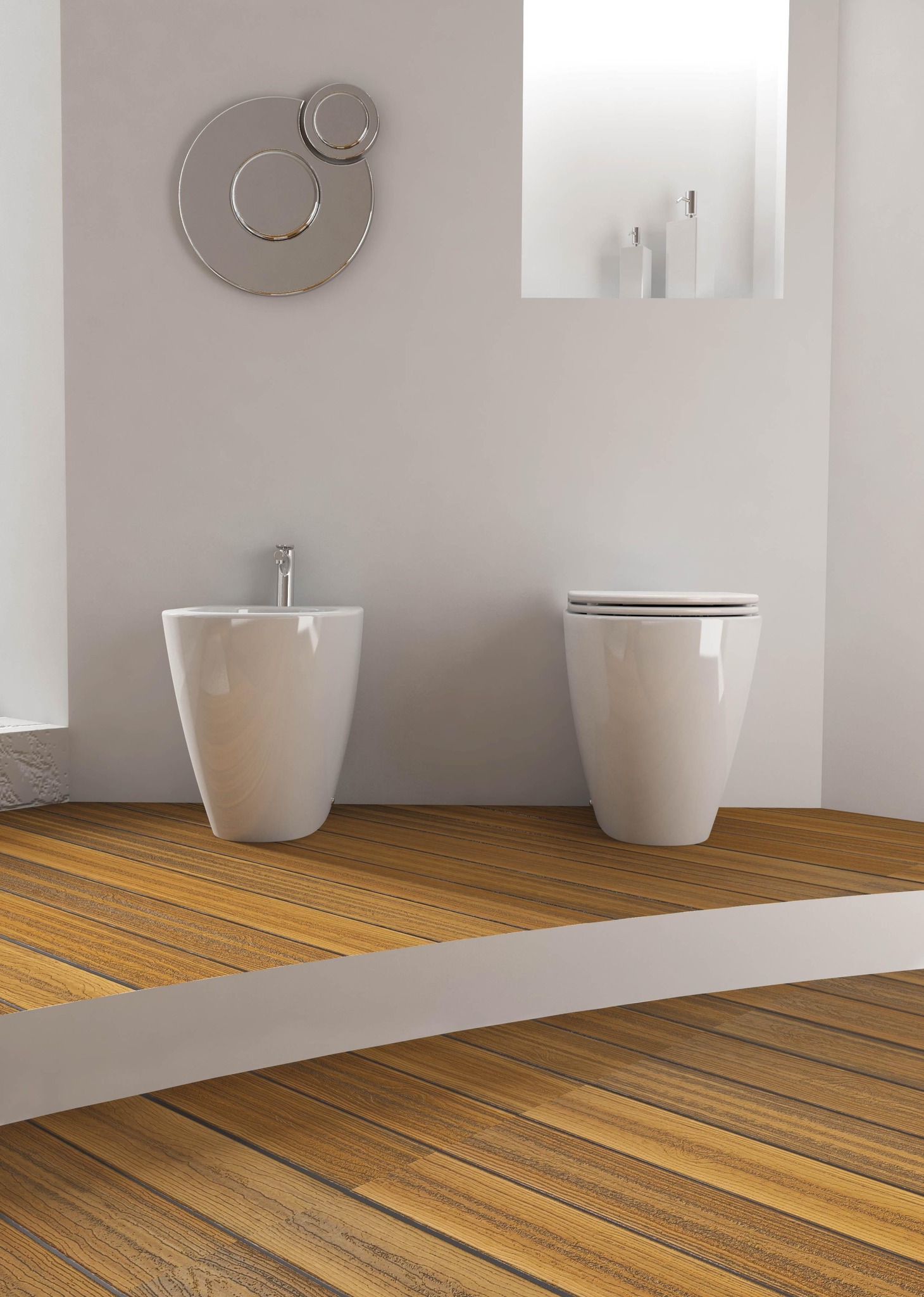 Coppia sanitari filo muro Aida senza brida.
