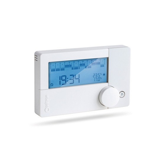 Cronotermostato elettronico giornaliero a batterie. Consente di regolare la temperatura ambiente in modo semplice e affidabile. Adatto al controllo di impianti di riscaldamento e raffrescamento tramite un'uscita a relè con contatti di scambio (C, NC, NO). La regolazione della temperatura ambiente avviene su 2 livelli: Comfort e riduzione. Alimentazione a batterie 2 x 1,5V AA. Durata batterie >3 anni. Portata contatti 5(1)A 250V SPDT. Intervallo regolazione 5 .. 40°C. Grado di protezione IP30. Dimensione LxHxP mm 134x86x36.(DianFlex)