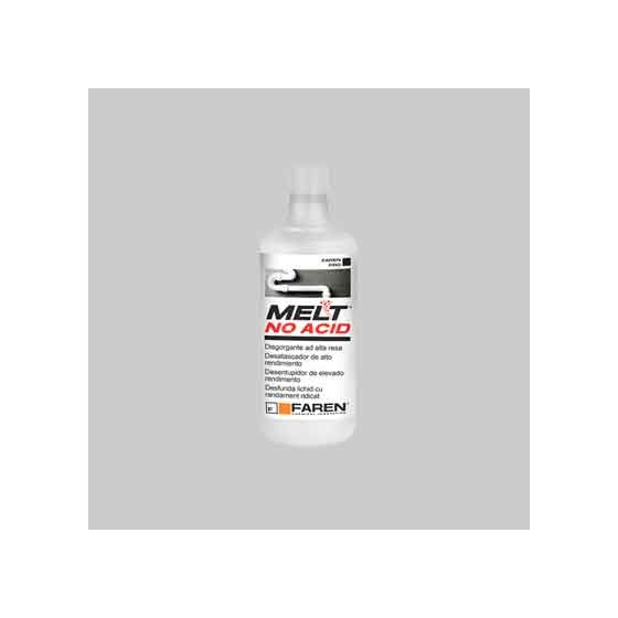 DISGORGANTE LIQUIDO CONCENTRATO 'MELT NO ACID' 1 lt - Disgorgante liquido concentrato che agisce attraverso l'acqua stagnante e mantiene puliti gli scarichi eliminando la fonte dei cattivi odori. Sicuro per le tubazioni. Libera gli ingorghi di scarichi, lavandini, tubazioni, WC, docce, etc. Modo d'uso: Versare 1/2 flacone nello scarico da trattare, lasciare agire per almeno 15 minuti e fare scorrere acqua calda.