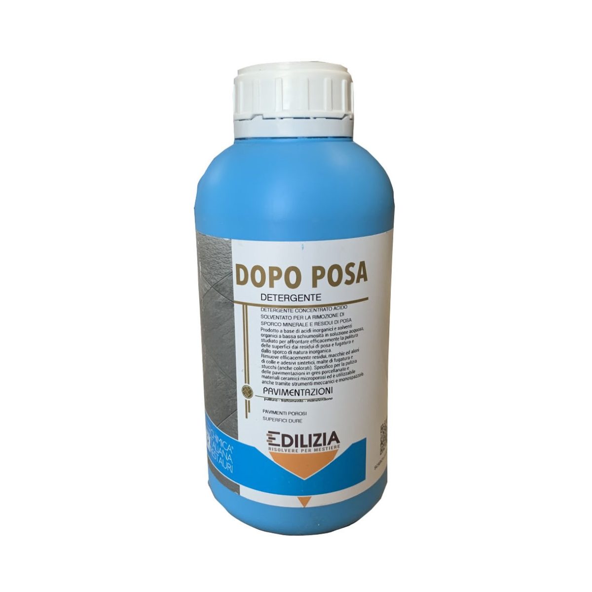 DOPO POSA è un prodotto a base di acidi inorganici a bassa schiumosità in soluzione acquosa, studiato per affrontare efficacemente la pulitura delle superfici dai residui di posa e fugatura dovuti alla loro messa in opera, oltre che dallo sporco di natura inorganica. Rimuove efficacemente residui, macchie e aloni di colle e adesivi sintetici, malte di fugatura e stucchi (anche colorati). DOPO POSA è specifico per la pulizia delle pavimentazioni in gres porcellanato e materiali ceramici microporosi ed è utilizzabile anche tramite strumenti meccani e mono-spazzole.