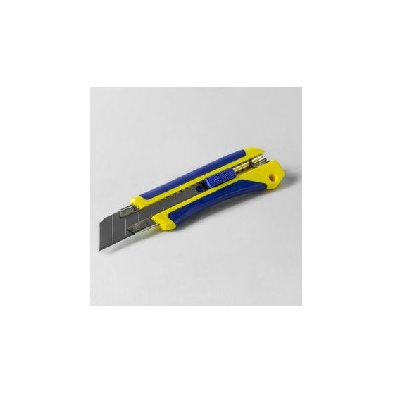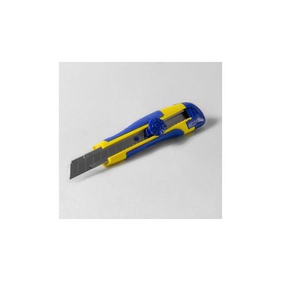 - Cutter "midi" professionale in ABS, lama 18 mm (art. NAT03002AX). Cutter con lama retraibile, a spezzare, impugnatura ergonomica in ABS / gomma antiscivolo. Con rotella di bloccaggio. Per il taglio della lastra in cartongesso.