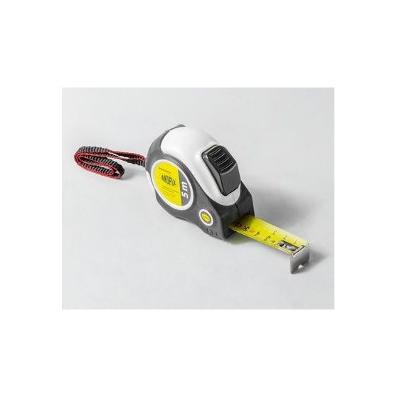 - Flessometro gommato professionale "Zebra", 5 m (art. NSM40006). Cassa con trattamento superficiale antiscivolo gommato ergonomico. Doppio dispositivo autobloccante. Altissima resistenza del congegno di ritorno del nastro. Nastro millimetrato con trattamento superficiale al nylon ad alta resistenza.