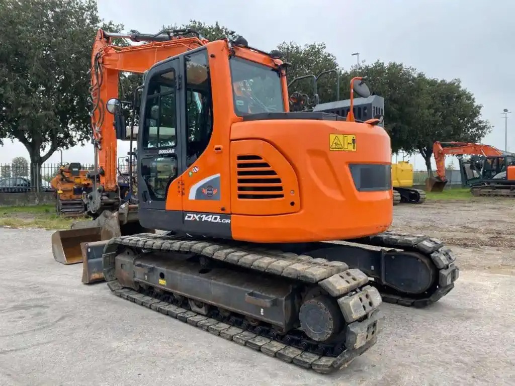 motore Perkins 1204F potenza 85.9 Kw, braccio monolitico, larghezza lama frontale 2.500 mm, benna fossi orientabile larghezza 2.000 mm, benna scavo larghezza 800 mm, attacco rapido meccanico Kingshofer, cingoli road-liner in gomma, sistema di visione 360° retrocamera e videocamere laterali, impianti idraulici ausiliari.