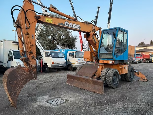 Escavatore gommato CASE 788 in discrete condizioni generali Braccio triplice Lama anteriore Due piedi stabilizzatori posteriori Impianto martello Valvole anticaduta sui pistoni Trazione integrale 4x4 TARGA con libretto di circolazione Ore di lavoro 747h Anno di costruzione 1998 Meccanica in ordine, per ulteriori informazioni chiamare.