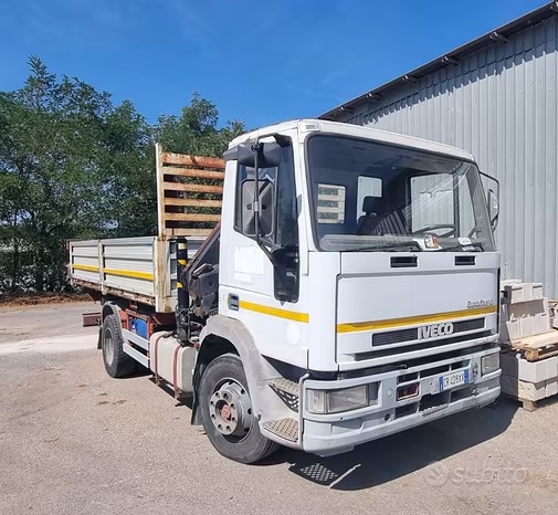 Autocarro Eurocargo 130E18 con gru hiab 722 con due fili idraulici Ribaltabile trilaterale con cassone da 4 m il camion ha 440.000 Km e le condizioni sono buone con revisione valida.