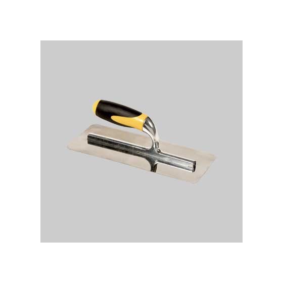 FRATTONE LISCIO INOX C/MANICO GOMMA 28x12 cm - Frattazzo di tipo USA. Questo articolo è dotato di manico in fibra con impugnatura in gomma antiscivolo e il piano in acciaio inox ha forma rettangolare con spigoli vivi.