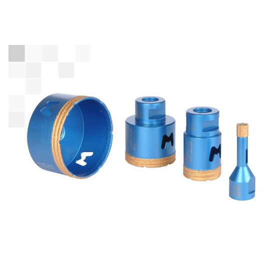 La linea di Frese Diamantate uso a secco FS Mondrillo e’ stata studiata dal dipartimento Ricerca e Sviluppo della Montolit al fine di avere un utensile molto veloce e capace di forare in pochissimi secondi e senz’acqua qualsiasi tipo di ceramica o grès porcellanato.