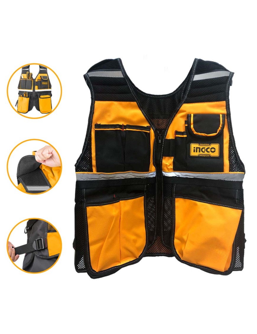 Il gilet porta attrezzi Ingco HTVT0901 è una parte integrante dell'abbigliamento da lavoro di un professionista organizzato e comodo grazie alle molte tasche. E' un gilet porta utensili a taglia unica con regolazioni orizzontali e verticali che si adattano perfettamente al corpo e che con gli inserti catarinfrangenti è anche utile sul piano della sicurezza.