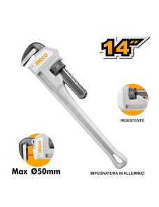 Giratubi in alluminio Ingco professionali di varie misure. Serie Industrial, sinonimo di qualità e prestazioni elevate. Queste giratubi hanno un grip sicuro su tubi e raccordi.