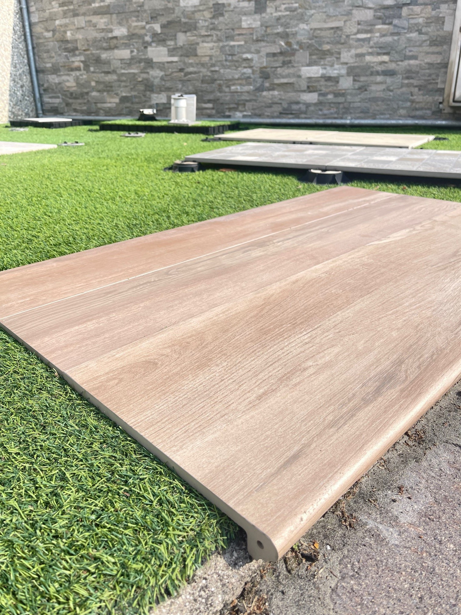 Perfetto per realizzare una pavimentazione completamente uguale, con gres effetto legno che gradini della stessa serie.