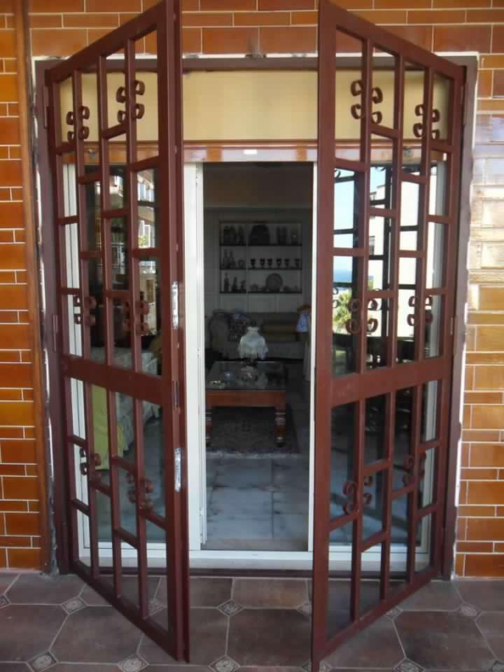 Grata in ferro con telaio angolare 35 x 35 x 2, anta tubolare 35x35x2,divisori tubolare 30x30 e disegni artistici secondo la richiesta del cliente,verniciatura eseguita con due mani di antiruggine e due di vernice,tutto quanto eseguito a spruzzo. Spedizione a parte.