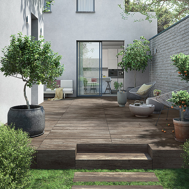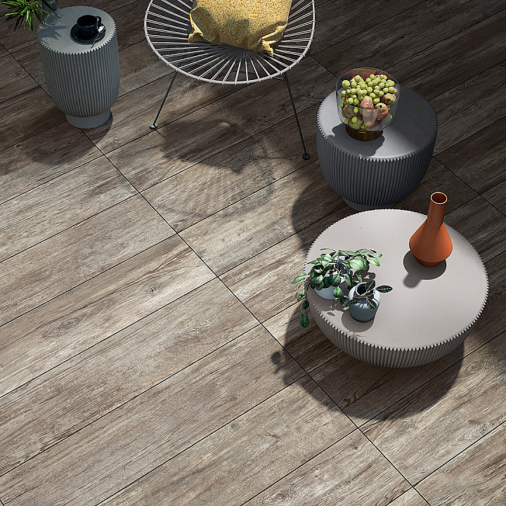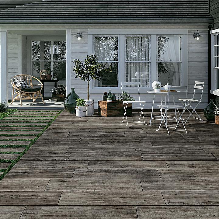 Pensato per offrire un prodotto ceramico di design, adatto a qualsiasi ambiente esterno, Rail della gamma EVO_2/E™ di Mirage è capace di integrarsi alla perfezione nei diversi utilizzi, grazie alla posa a secco (su erba, sabbia, ghiaia) con colla su massetto per superfici carrabili e a sopraelevata per pavimenti flottanti. Sviluppato nel grande formato doga 30x120, effetto parquet per abbinare la suggestione del più classico dei materiali da rivestimento, il legno, con la forza del materiale più duraturo per la pavimentazione, il gres porcellanato in spessore 20 mm.