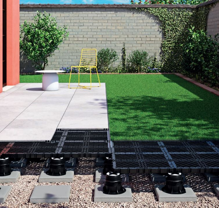 Possibilità di posare piastrelle da 20/30 mm per esterno, oppure erba sintetica, per realizzare dei giardini sopraelevati.