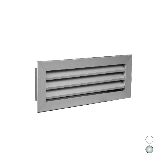 Griglia di ripresa ad alette fisse inclinate di 45° passo 25 mm. In alluminio. Impiego: a parete. Fissaggio standard con clips.(DianFlex)
