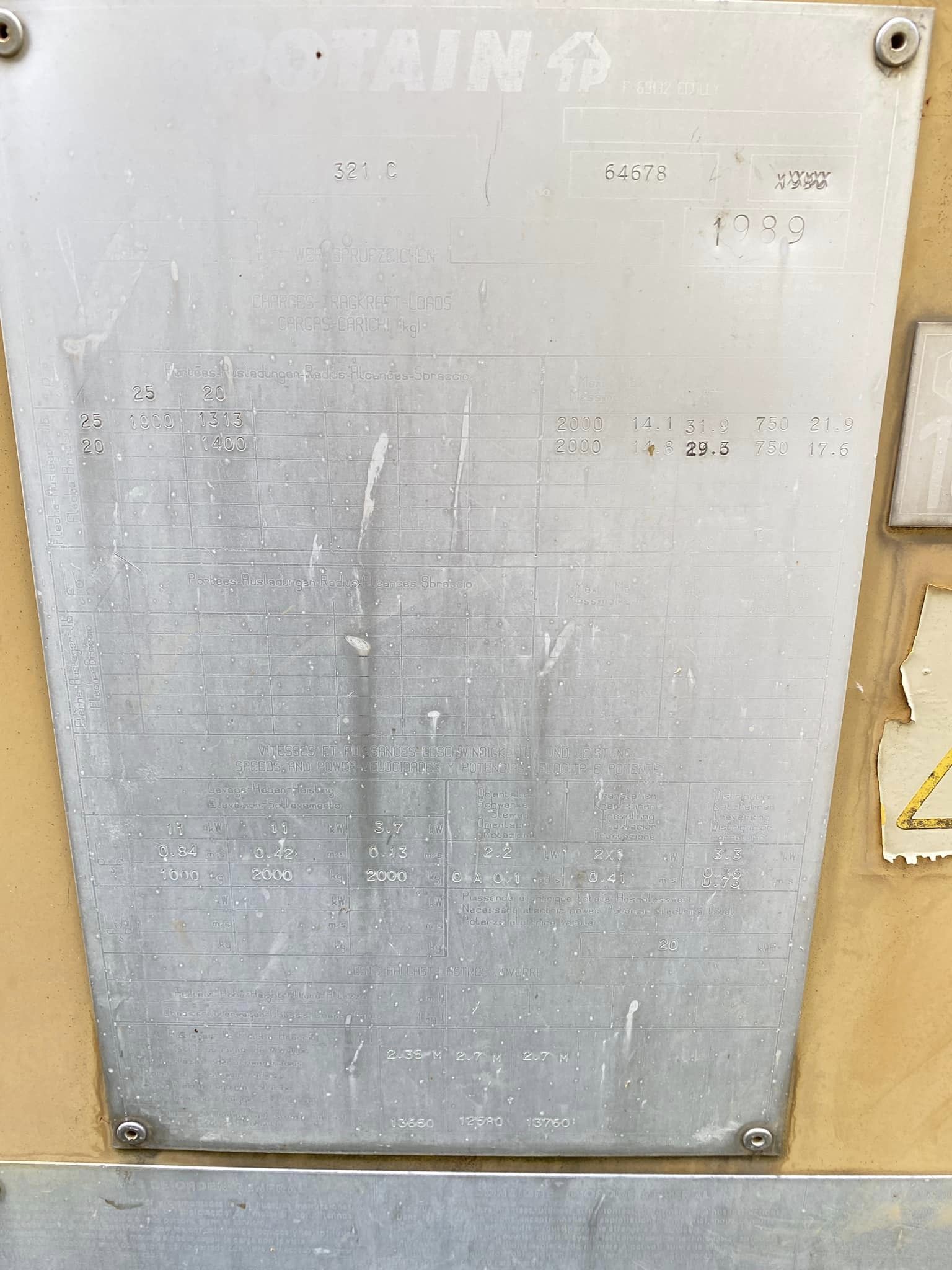 Gru POTAIN 321 C usata anno 1989 braccio 25 metri portata Max 2000 Kg trifase completa di basi d'appoggio certificate e documenti condizioni ottime prezzo Euro : 11.000 per informazioni contattare il numero.