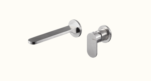Gruppo miscelatore monocomando a parete per lavabo completo di parti incasso, senza scarico, con bocca L=200 mm e senza raccorderia di collegamento.
