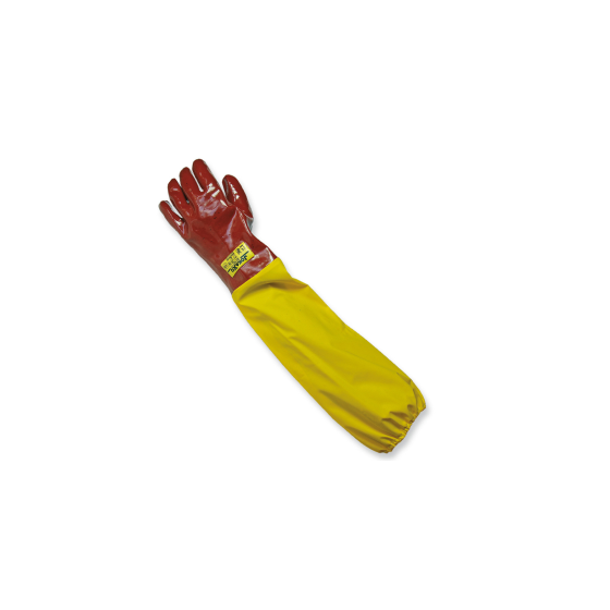 GUANTI PVC ROSSO CON MANICH. GIALLA 60 CM TAGLIA 10.