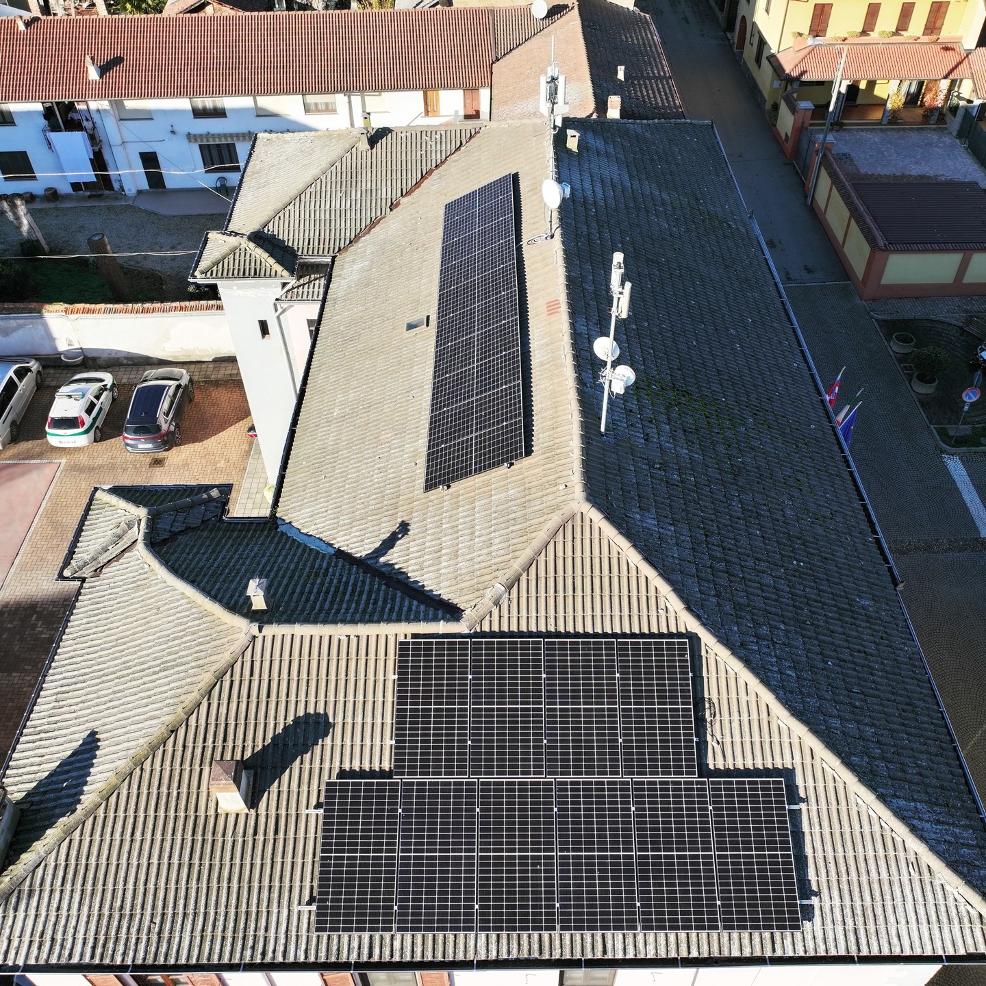 Impianto fotovoltaico da 10 kw con due stringhe da 10 pannelli solari l'uno.