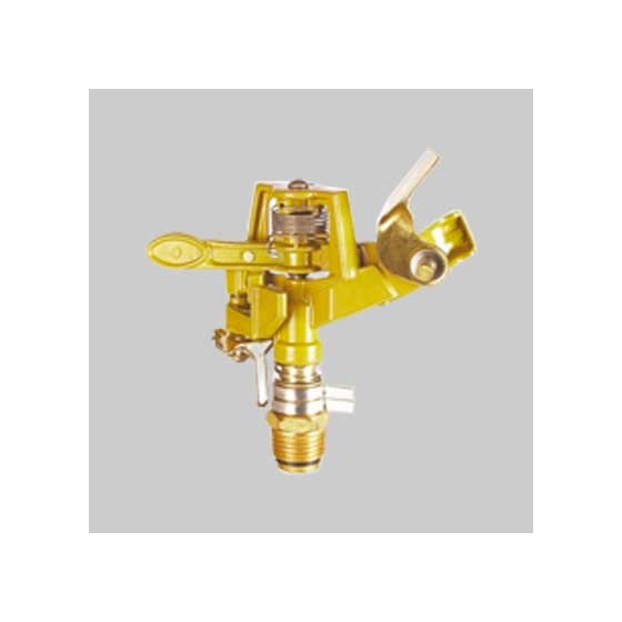 IRRIGATORE G.F. 'SPIT METAL' - Pulsante a settore, in metallo ideale per grandi superfici. Dispositivo rompigetto per la distribuzione uniforme dell'acqua. Angolo di irrigazione da 15° a 360°. Portata massima 16 l/min. a 4 bar. Raggio di azione 13 m.