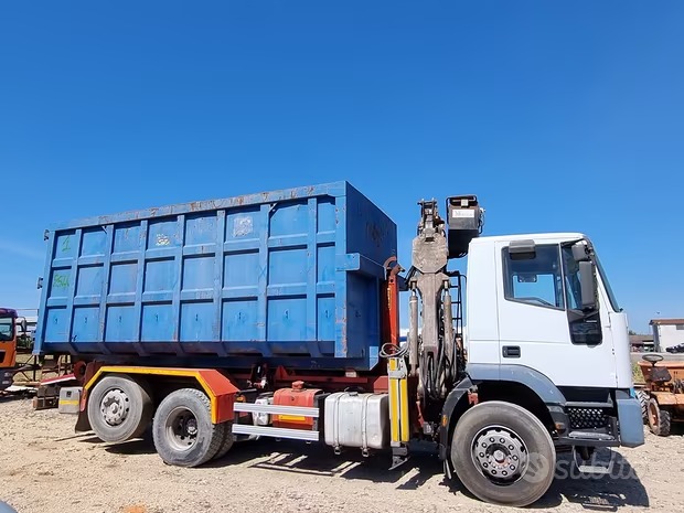 Iveco eurotech 260E27 SCARRABILE CON POLIPO +CASSA Anno 2000 Motore messonl nuovo 150.000 km fa con fattura iveco Polipo Cassa da 6 mt Terzo asse sterzante.