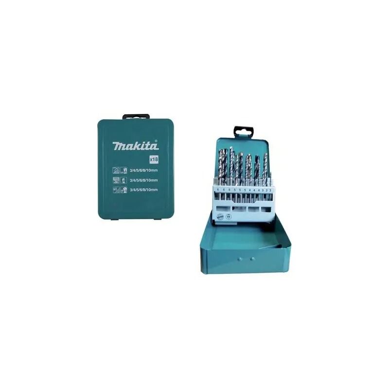 Kit di punte cilindriche in dispenser richiudibile in metallo. Contenuto: 6 punte legno Mm. 3-10. 6 punte metallo HSS Mm. 3-10 e 6 punte muro Mm. 3-10.