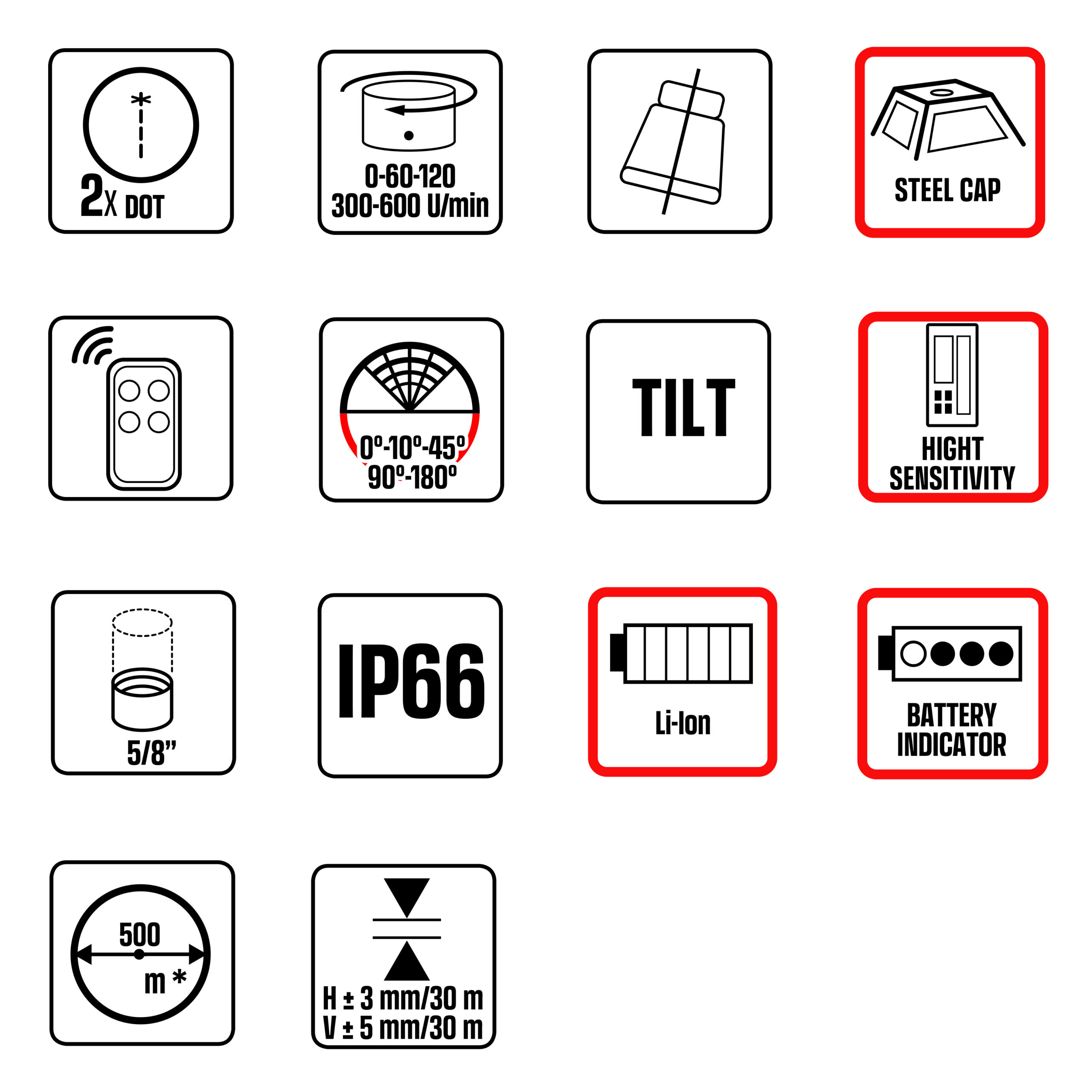 - Laser dotato di 4 maniglie gommate per una presa più facile e una maggiore protezione