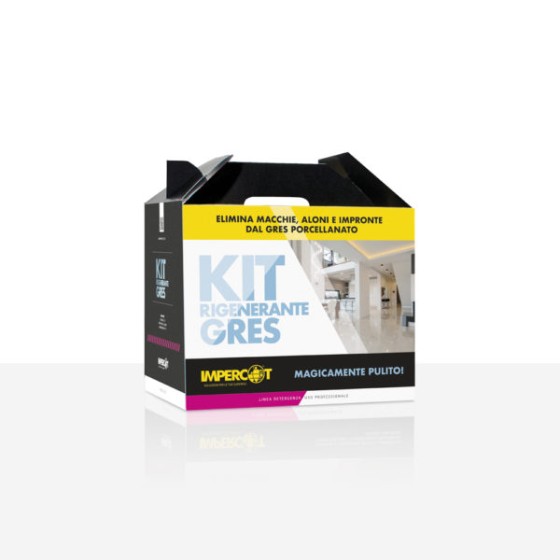 Kit Rigenerante Gres è un kit innovativo creato allo scopo di eliminare senza fatica le formazioni di patina lucida dal gres porcellanato. Elimina senza fatica sporco ostinato, residui calca-rei e stati grassosi. Pulisce senza aggredire lo sporco dalle fughe.