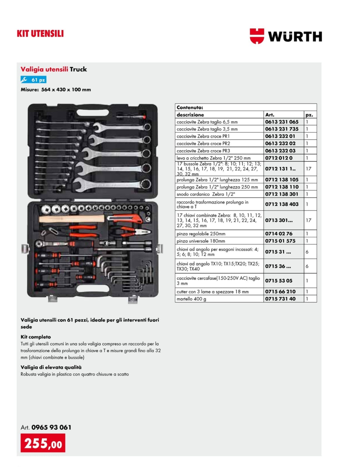 Valigia utensili con 61 pezzi,ideale per gli interventi fuori sede