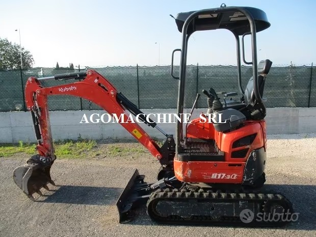 miniescavatore KUBOTA U17-3 a anno 2017 peso kg. 1.700 ore 1.800 buone condizioni vernice discreta carro variabile doppia velocità di traslazione antifurto sgancio rapido Cangini impianto martello e giropinza certificato di conformità CE NO MESSAGGI E NON INVIAMO FOTO/VIDEO ulteriori informazioni e prezzo solo telefonicamente dal lunedì al venerdì ore 8,30-12 e 14-19 ai numeri 339-7182098 e/o 331-9538806 si riceve solo su appuntamento siamo a 150 metri dall'uscita di Sirmione Rivenditore AGOMACCHINE SRL dal 1956.